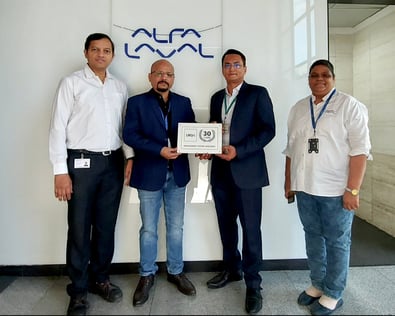 LRQA presented the '30 Years of QMS Excellence' award to Mr. Vikram Velankar, Operations Director, and Mr. Sanjay Marne, Regional HSEQ Manager, Alfa Laval India.