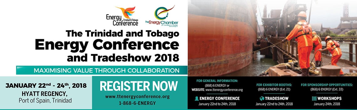 The Energy Chamber of Trinidad and Tobago will host its Annual Trinidad and Tobago Energy Conference from January 22nd – 24th, 2018 at the Hyatt Regency, Port-of-Spain. The Trinidad and Tobago Energy Conference is the premier Energy Conference in the Caribbean and promotes vigorous debate and discussion among leaders of industry, Government and academia. Approximately 1400 visitors were in attendance over the three days of the 2017 Energy Conference – roughly three to four times more than other annual energy conferences held in the country. Delegates from the US, the United Kingdom, Barbados, Guyana, Suriname, Venezuela, China and the Falklands Island and the Dominican Republic, were participants. The conference attracts senior decision makers in the industry including the CEOs, supply chain, finance, and operations managers of the major upstream, midstream, and downstream operator companies in Trinidad and Tobago.