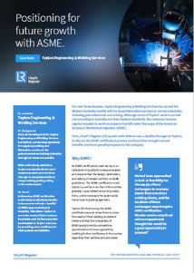 In this case study, Mathew Lee, Quality Manager at Taylors, discusses the ASME certification process and how it has brought several benefits and growth prospects to the company.