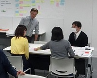 今回は2グループで演習を進めました。各受講生は自分が所属する組織での取り組みを思い浮かべながらグループ内で意見を交わしました。その様子を見ながら、講師はさらに活発な話し合いが行われるように問いかけをしていきます。 グループでの意見交換を通じて、業種は違えどもよく似た課題をお互いに抱えていることを知るとともに、他社の取り組みを耳にすることで新たな方法に気づくことができます。講師からだけでなく他の受講者から学ぶことが多いのも、グループワークの利点です。