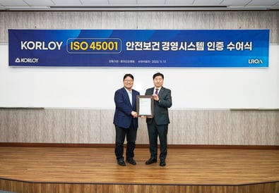 11월 17일 한국야금(KORLOY) 진천 사옥에서 ISO 45001 안전경영시스템 인증을 축하하는 인증수여식이 진행되었습니다.