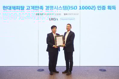 10월 12일, 현대캐피탈의 고객만족경영시스템(ISO 10002) 인증서 획득을 축하하는 인증수여식이 진행 되었습니다.