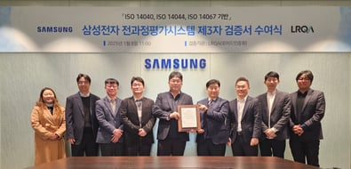 1월 8일 삼성전자에서 제품의 전과정 동안의 기후변화 영향 등 잠재적 환경 영향을 평가하는 전과정평가(LCA) 및 탄소발자국(PCF) 검증의견서 수여식을 진행되었습니다.