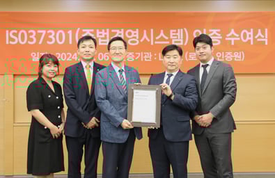 10월 31일, 서울 용산 LS타워에서 ISO 37301 (규범준수경영시스템) 국제표준 인증 획득을 축하하는 인증 수여식이 진행되었습니다.