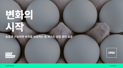 Farm First (팜 퍼스트) - 달걀 관리 표준 LRQA의 농장 보증 스킴인 Farm First는 동물 및 근로자의 복지와 지속가능한 목표를 달성할 수 있도록 지원하는 LRQA의 보증 제도 입니다. 이번 브로셔에서는 달걀 관리 표준을 확인하실 수 있습니다. 더 읽어보기