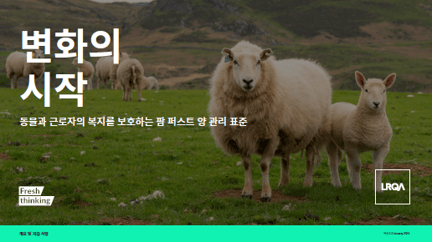 Farm First (팜 퍼스트) - 양 관리 표준 LRQA의 농장 보증 스킴인 Farm First는 동물 및 근로자의 복지와 지속가능한 목표를 달성할 수 있도록 지원하는 LRQA의 보증 제도 입니다. 이번 브로셔에서는 달걀 관리 표준을 확인하실 수 있습니다. 더 읽어보기