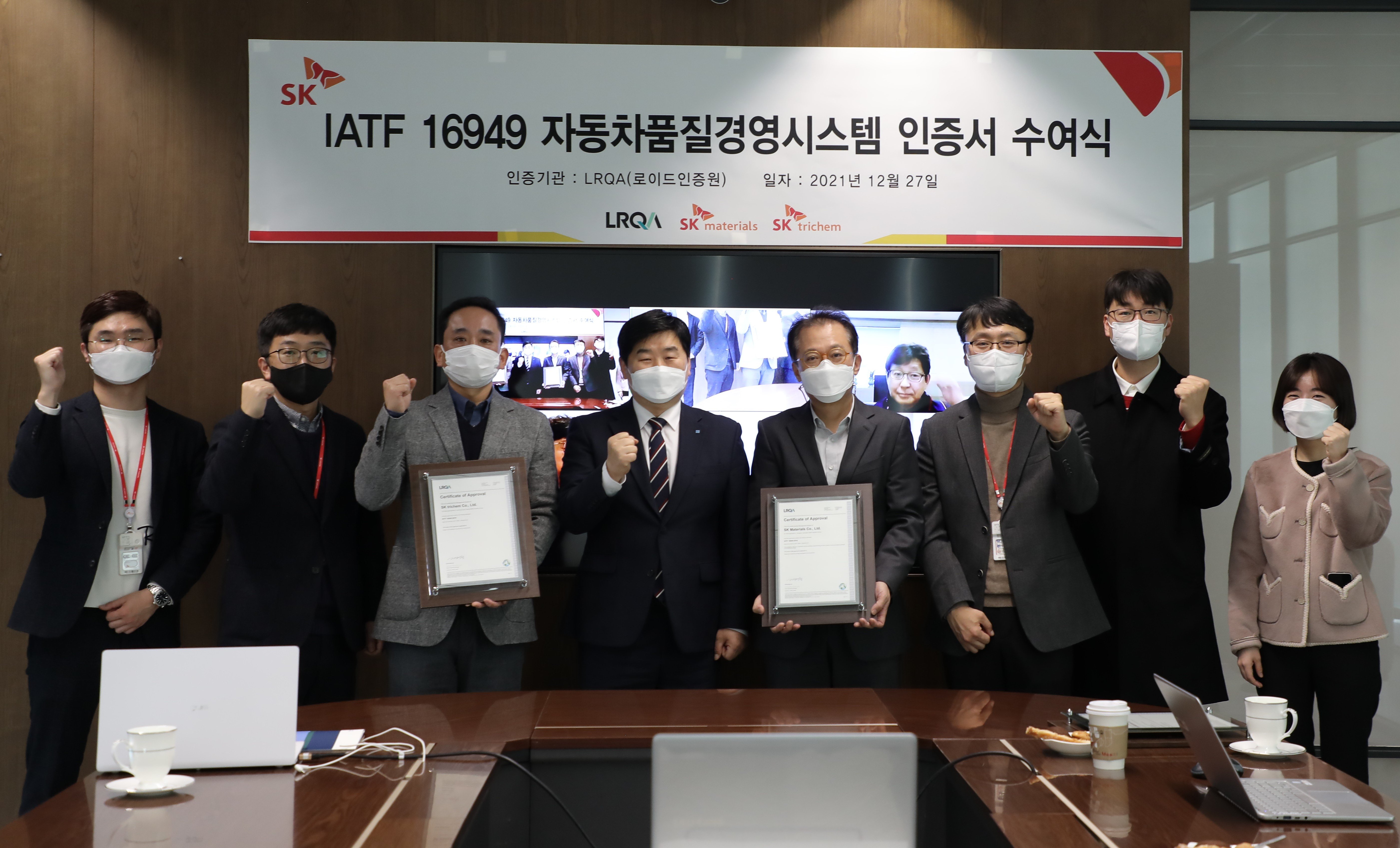 SK머티리얼즈 와 SK트리켐이 자동차 품질 경영시스템 IATF 16949 를 LRQA로부터 인증 획득하였습니다.
